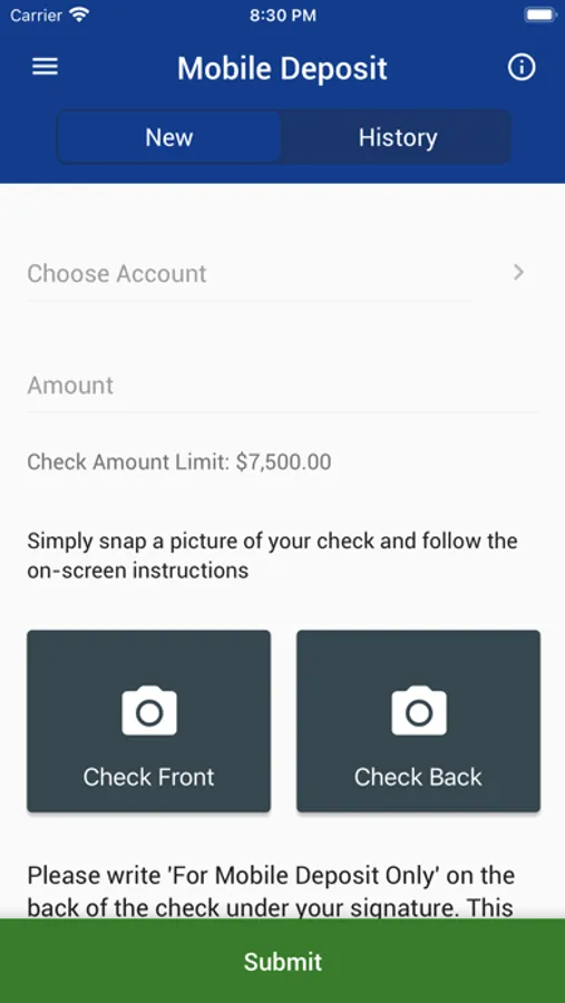 - Mobile Check Deposit