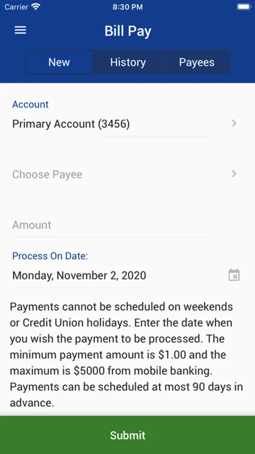 - Online Bill Pay from the App