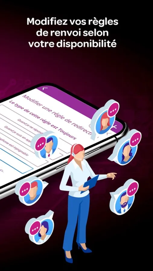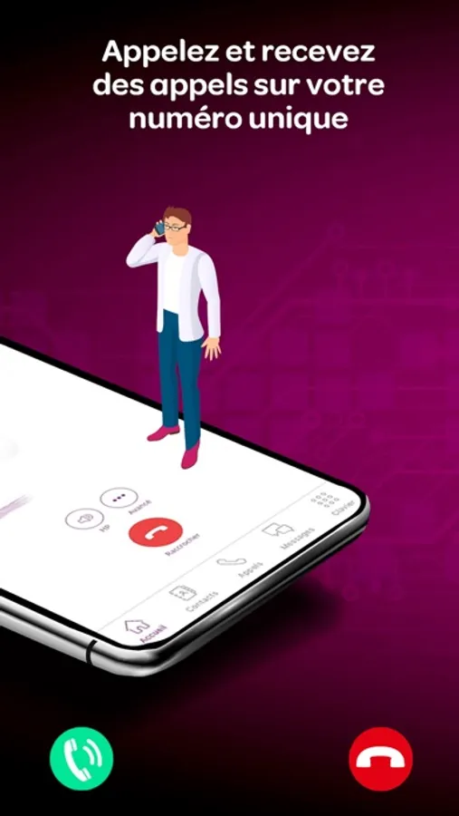 - Bénéficier du Softphone VoiP intégré (WiFi ou données mobiles)
