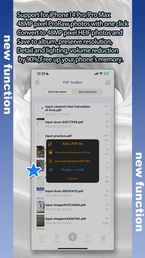 8. Perfect file import function: external app sharing, directly from the folder to add, from the album to add photos to generate PDFs, scan files to generate PDFs