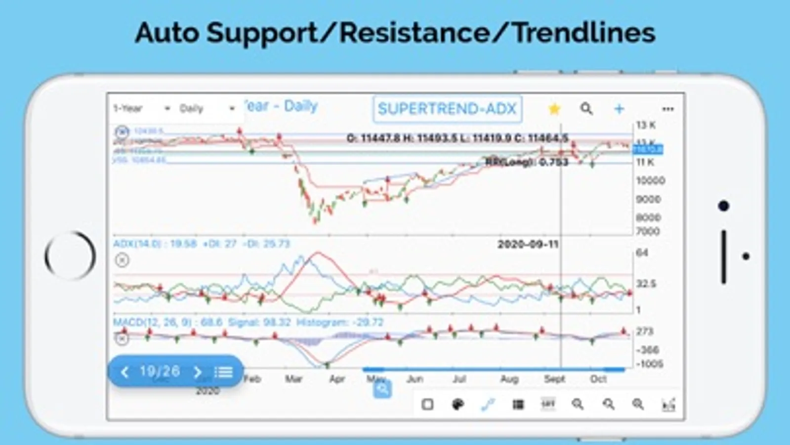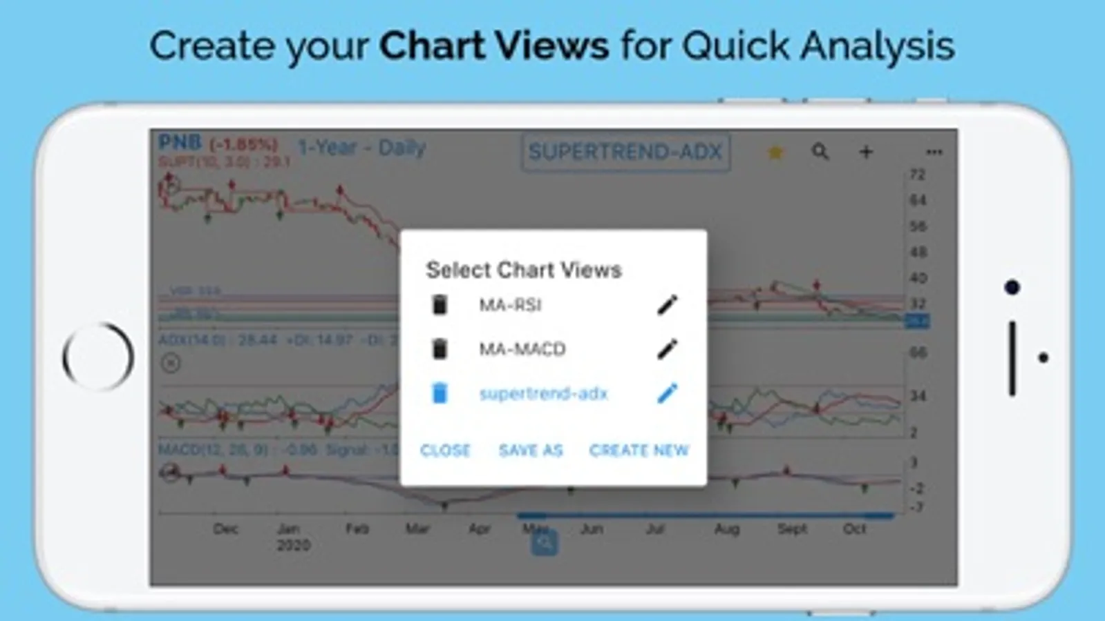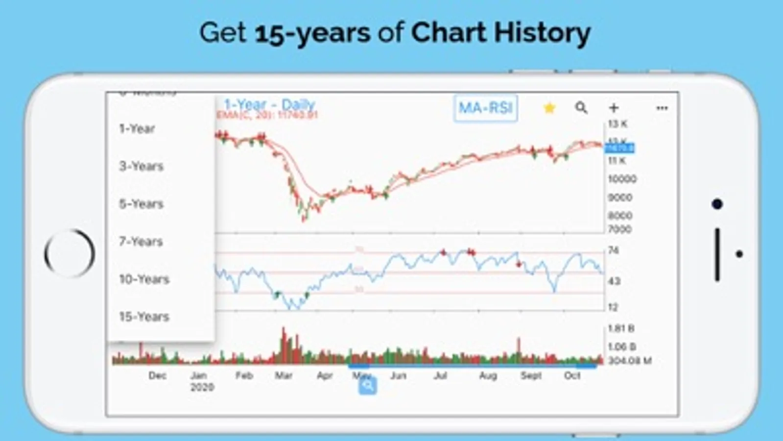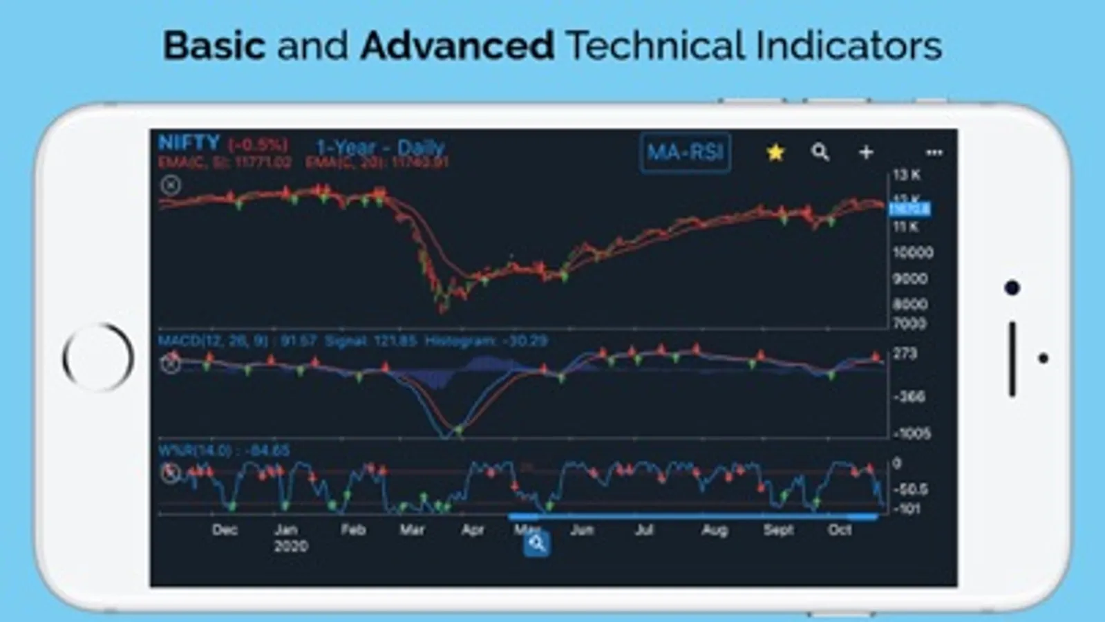 Simple yet most powerful Stock Market Technical Analysis App for Traders with Interactive Candlestick charts, 35+ Technical indicators, & 15+ EOD Scans on mobile with 1-min Real-Time data.