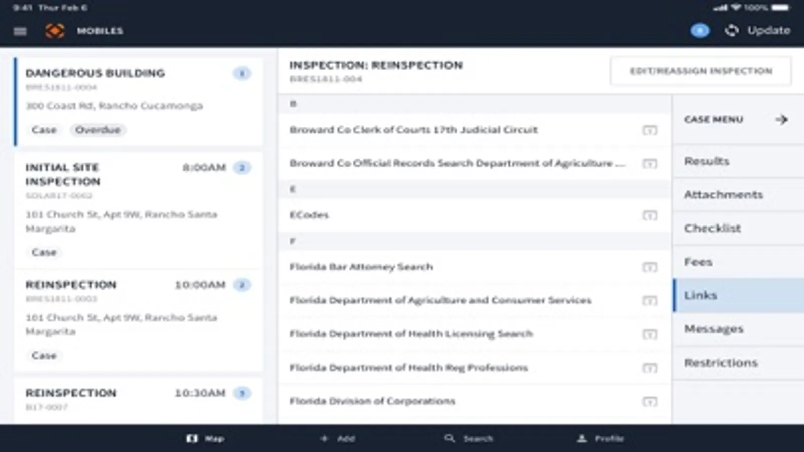 Provide government agencies with a link into their inspections with CentralSquare Mobile Inspection. This product allows Community Development customers to use their iPad to result inspections, code enforcement remotely in the field.