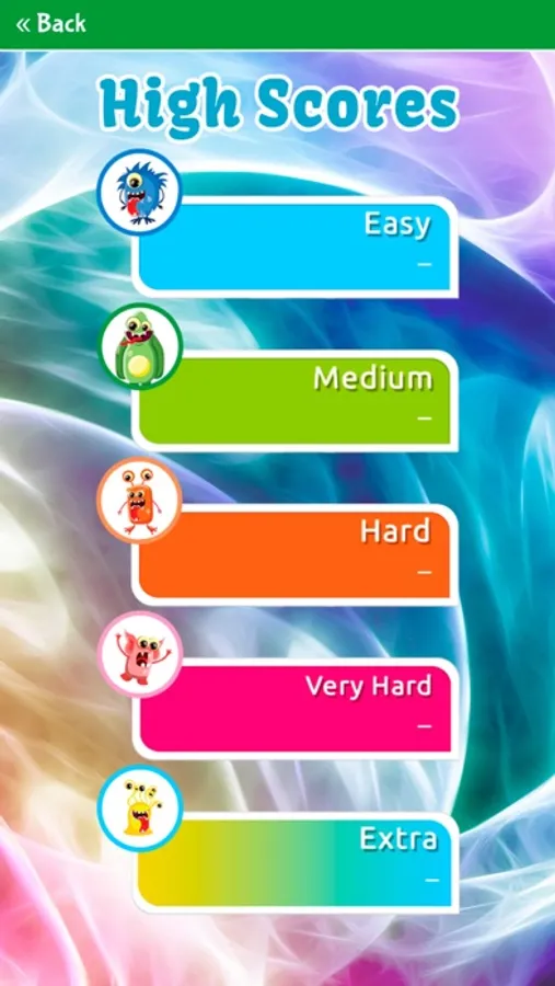 - 5 levels (easy, medium, hard, very hard and extra mode)