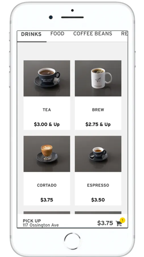 • Shop our entire bar menu and retail section: from lattes, to coffee beans to home brewing filters!