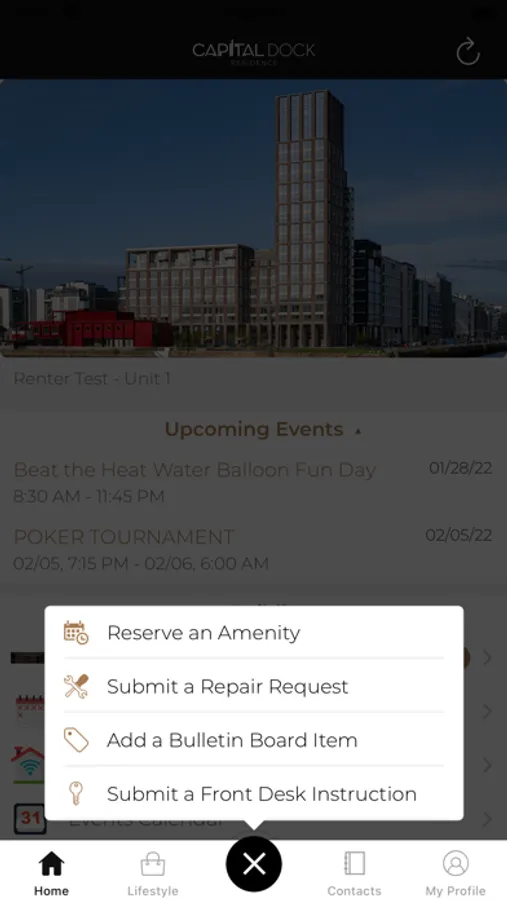 • Receive notifications from concierge regarding upcoming events at Capital Dock