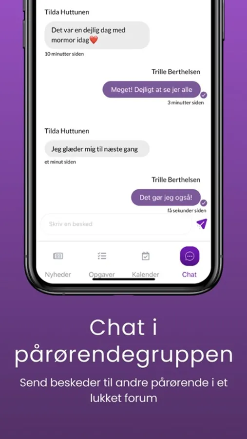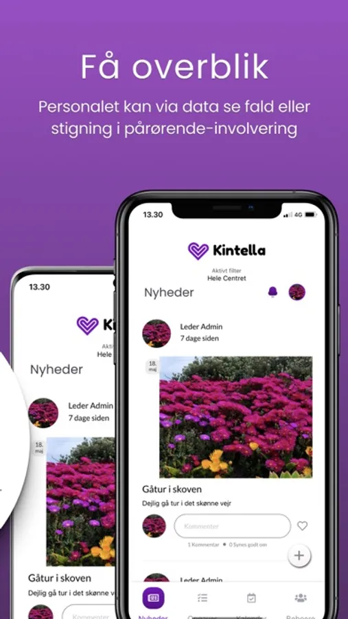 The purpose of Kintella is to strengthen the dialogue between citizens, their relatives, and staff within the care sector. Our app gathers and digitizes the coordination of calendars and tasks, and further structures and targets the communciation between citizens, relatives, and care givers. We aim to care for all needs in one solution. To this end, we also integrate to several private and municipal IT systems, The citizens can more easily follow their own calendar, e.g. by seeing upcoming activities and pictures from relatives' visits. The care givers have the citizens' life stories in the palm of their hands and get a simple tool to solve challenges and tasks they face everyday - e.g. the coordination of activities and visits. Relatives are supported in the tasks they are to solve in cooperation with the care givers - and they can easiliy share information with other relatives. All users can, in other words, quickly and easily get an overview. More time can be spent on relevant dialogue rather than practicalities. All data is encrypted and all relatives have to confirm their identity through NemID.