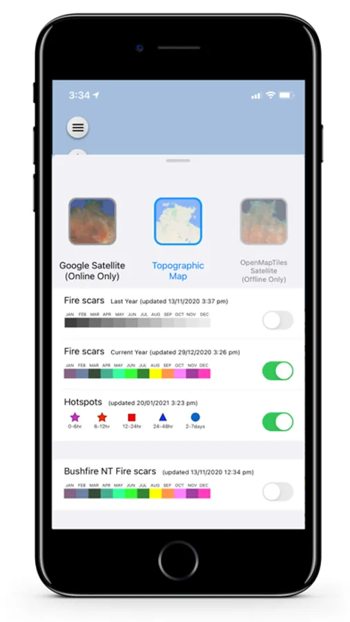 This app brings the most used fire information resource for land managers in Australia to your phone, allowing you to keep a constant eye on bushfire threats. You can view maps of recent fire activity (hotspots) and burnt areas (fire scars) provided by the North Australia and Rangelands Fire Information (NAFI) service.