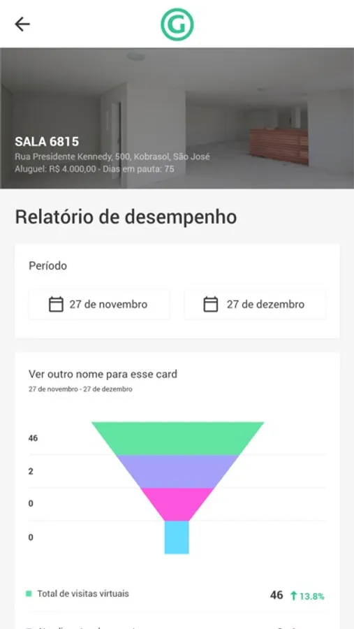 Fácil e rápido, você pode fazer comparativos por período de data e saber de forma exata como está a procura por seu imóvel na imobiliária, sem necessidade de ligações ou e-mail, tudo na palma da mão a hora que você precisar.