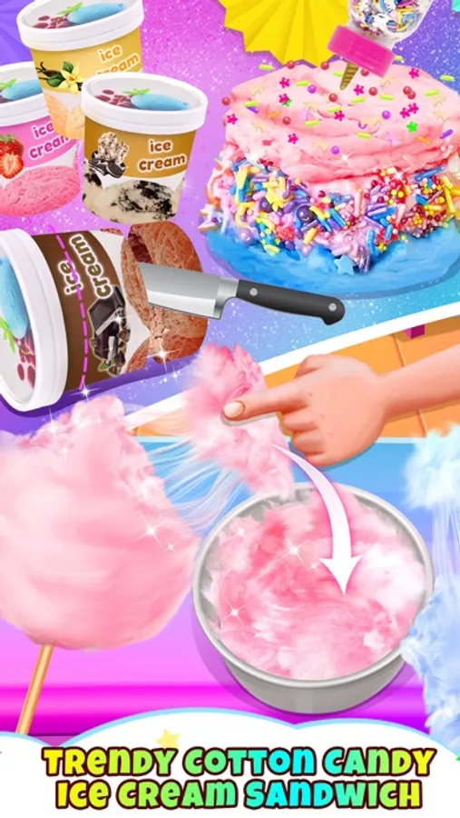 - Enjoy sweet cotton candy ice cream sandwiches.