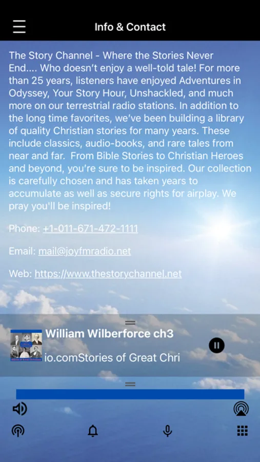 The Story Channel - Where the Stories Never End.... Who doesn’t enjoy a well-told tale! For more than a quarter of a century, listeners have enjoyed amazing audio adventures on our terrestrial radio stations. We’ve been building a library of quality stories - classics, audiobooks, and rare tales from near and far. From Bible Stories to Christian Heroes and beyond, you're sure to be inspired. Our collection was - and is - carefully chosen, and has taken years to procure while simultaneously securing rights for airplay. We pray you'll be enlightened on your journey toward the Celestial City!!!