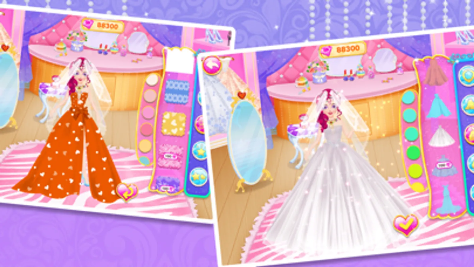 --Design a unique bridal wedding dress for the princess in her dressing room! There are hundreds of dress materials with pretty veils, headwears and jewelry prepared for the wedding! The dress must be perfect!