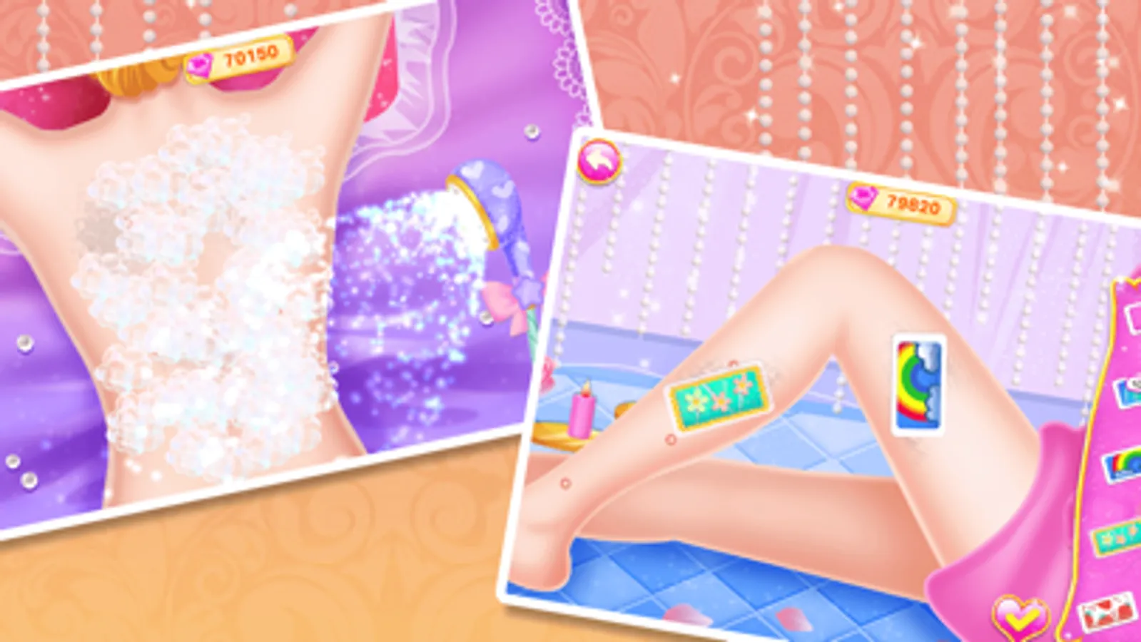 --Let magic princess have a great spa! Use dozens of skin care products to refresh and moisturize her face, back, legs & feet!