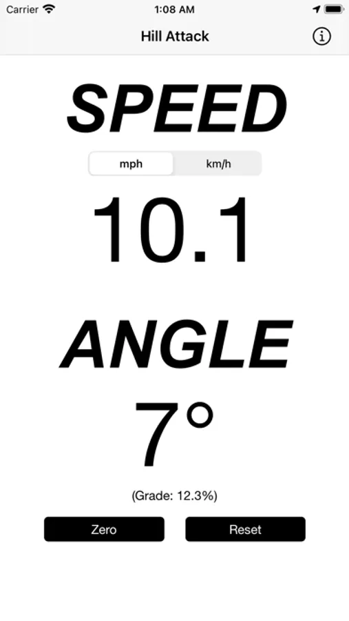 This app shows your speed and angle, that's it. Pretty simple.