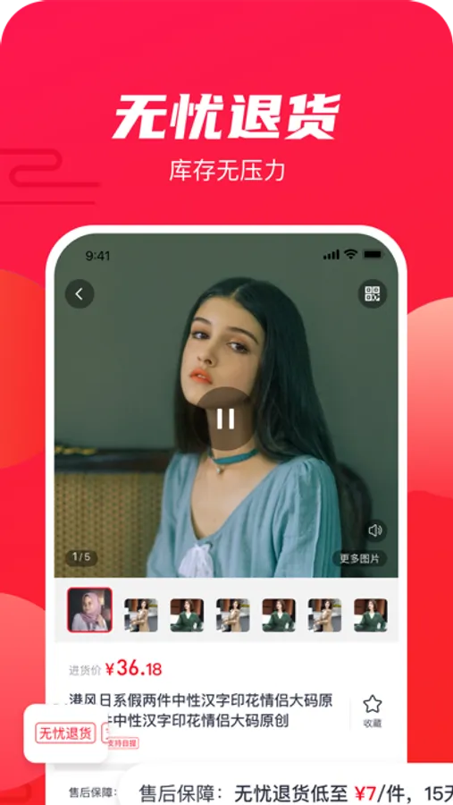 购买平台无忧退货服务,享受无理由退货,资金库存无压力