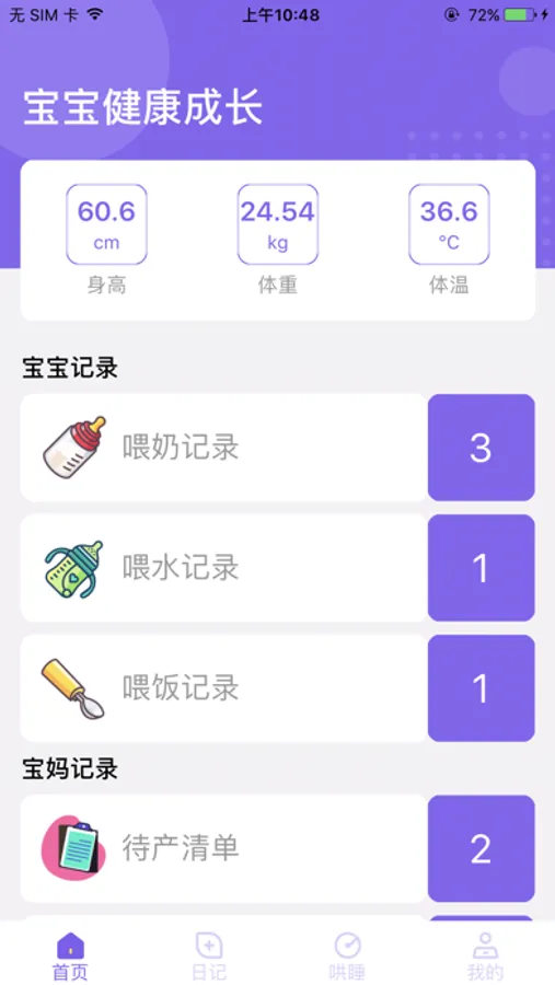 - 宝宝记录:宝宝身高体重、体温喂食等记录