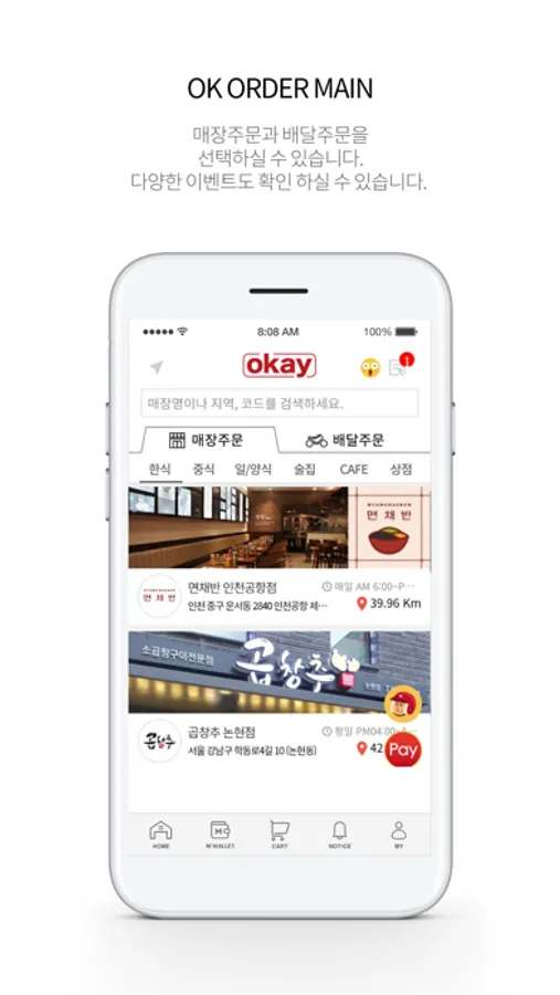 어떤 상점이든 오케이오더에 가맹할 수 있으며 이용자는 완전한 비대면주문 시스템과 배달주문 시스템을 이용할 수 있습니다.