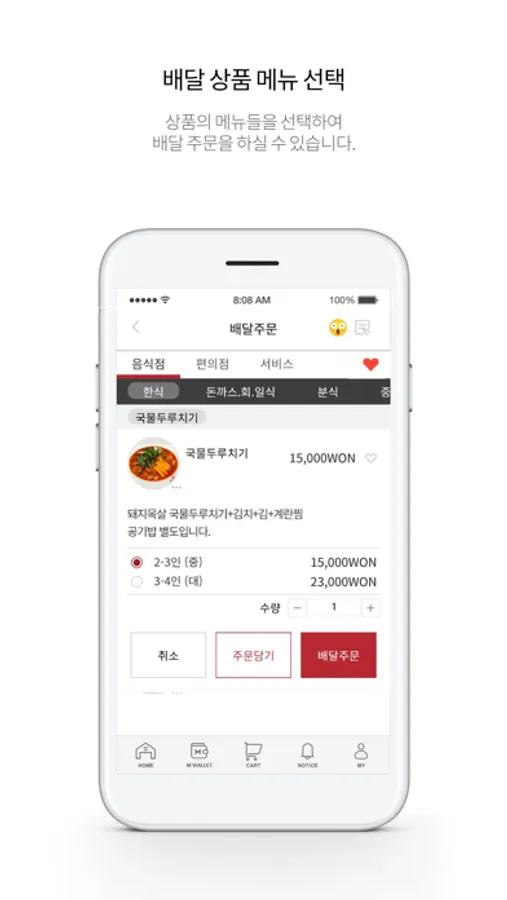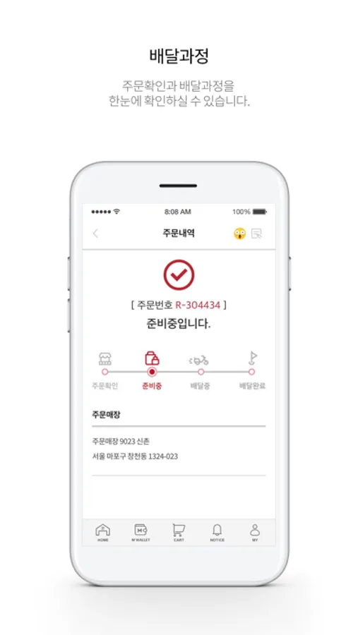 주문 후 매장에서 기다리지 않고 완료되었다는 알림을 확인 후 픽업을 가시면 됩니다.- 배달주문배달이 필요한 상품은 배달주문이 가능합니다.