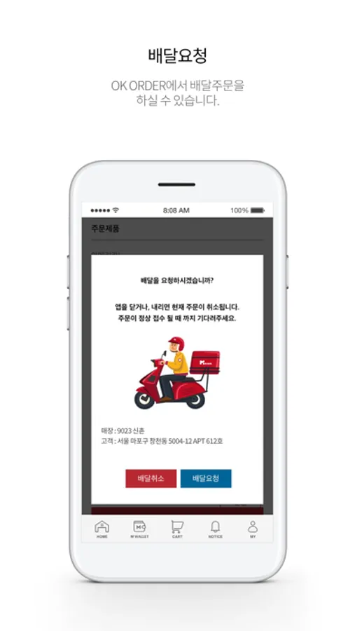 오케이오더는 별도의 배달전용앱(엠라이더)에 연동하여 누구든지 배달에 참여하고 저렴한 배달 수수료를 실현합니다.