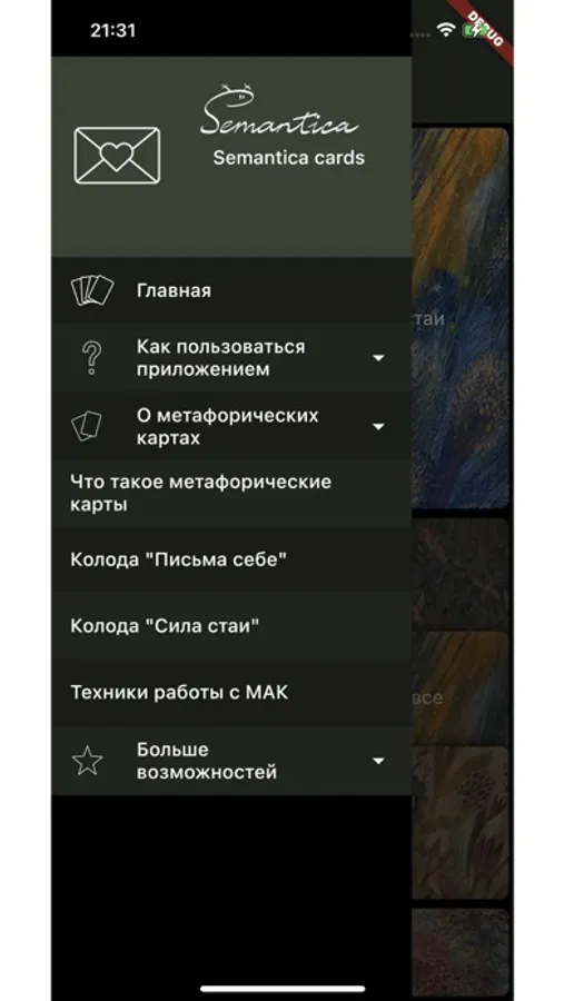 Semantica Cards - уникальное по своей красоте и функционалу приложение для работы с авторскими метафорическими картами Ольги Кругловой, аналогов которому нет в мире.