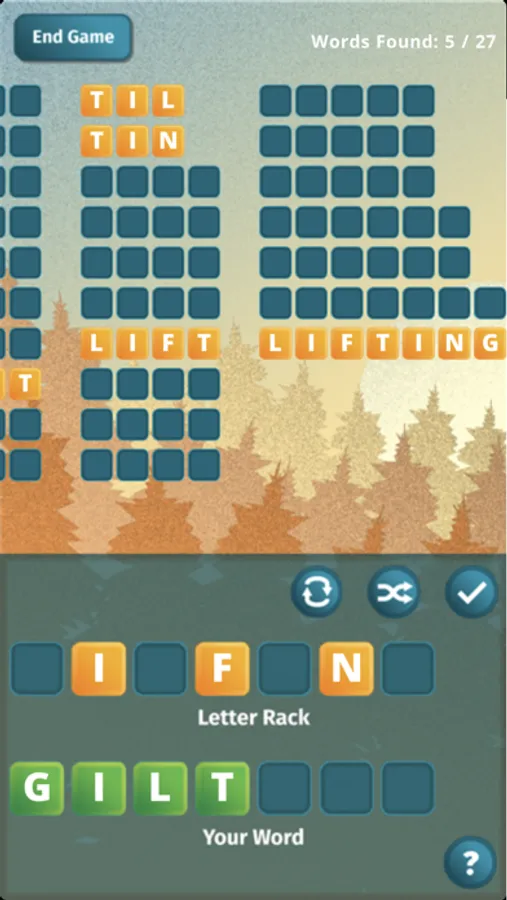 Playing Find My Words is a great way to relax and unwind after a long day. The graphics are beautiful, and the music is upbeat (if you select to have music – player’s choice). Pick letters – and then enjoy the challenge of finding every word!