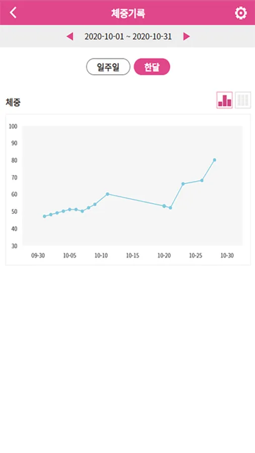 기록된 정보를 간편하게 확인 할 수 있는 표&그래프 화면