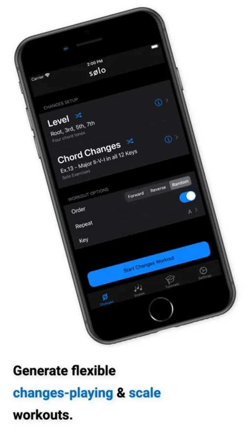 ‣ Solo listens to the notes you play, analyzes them in real time, and doesn’t move on until you’ve correctly found each note by its intervallic function in the specified order.