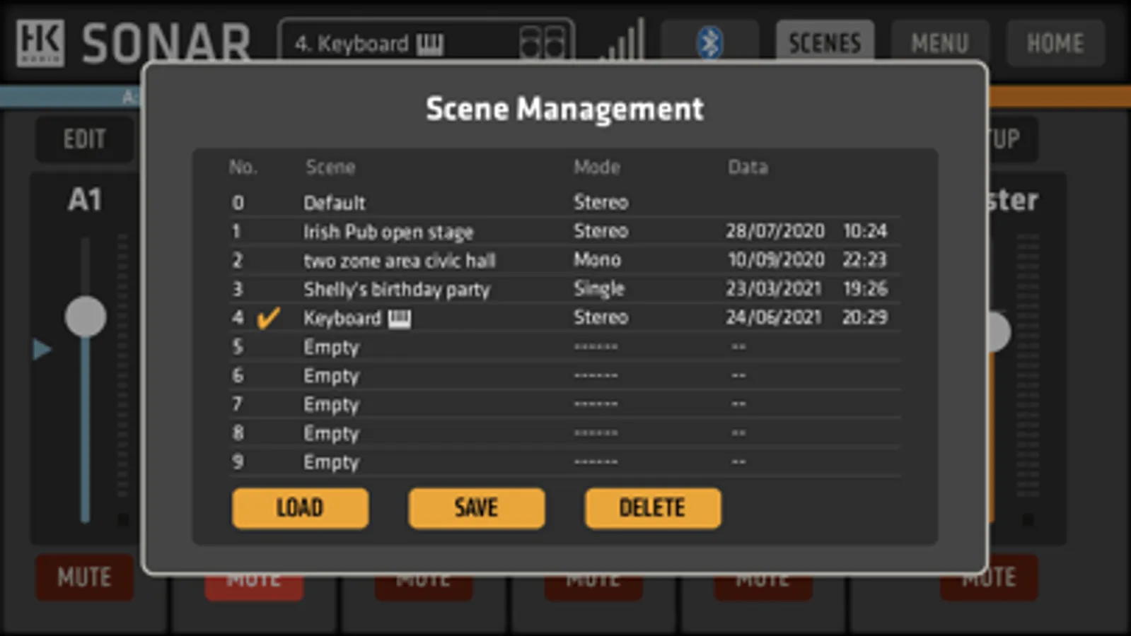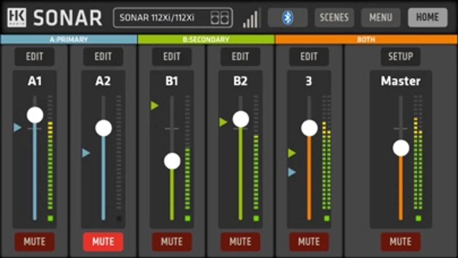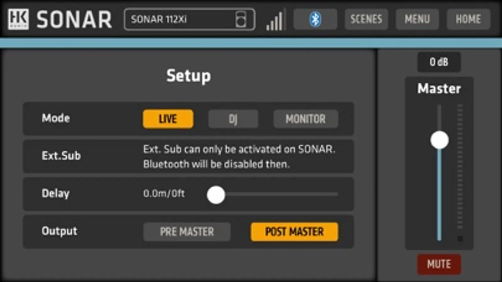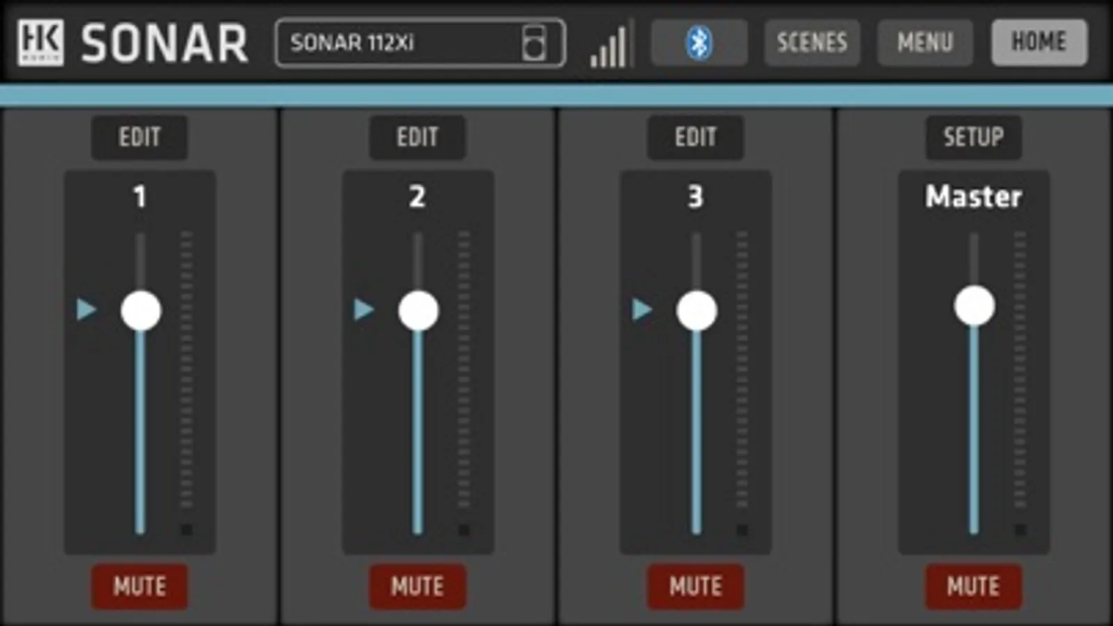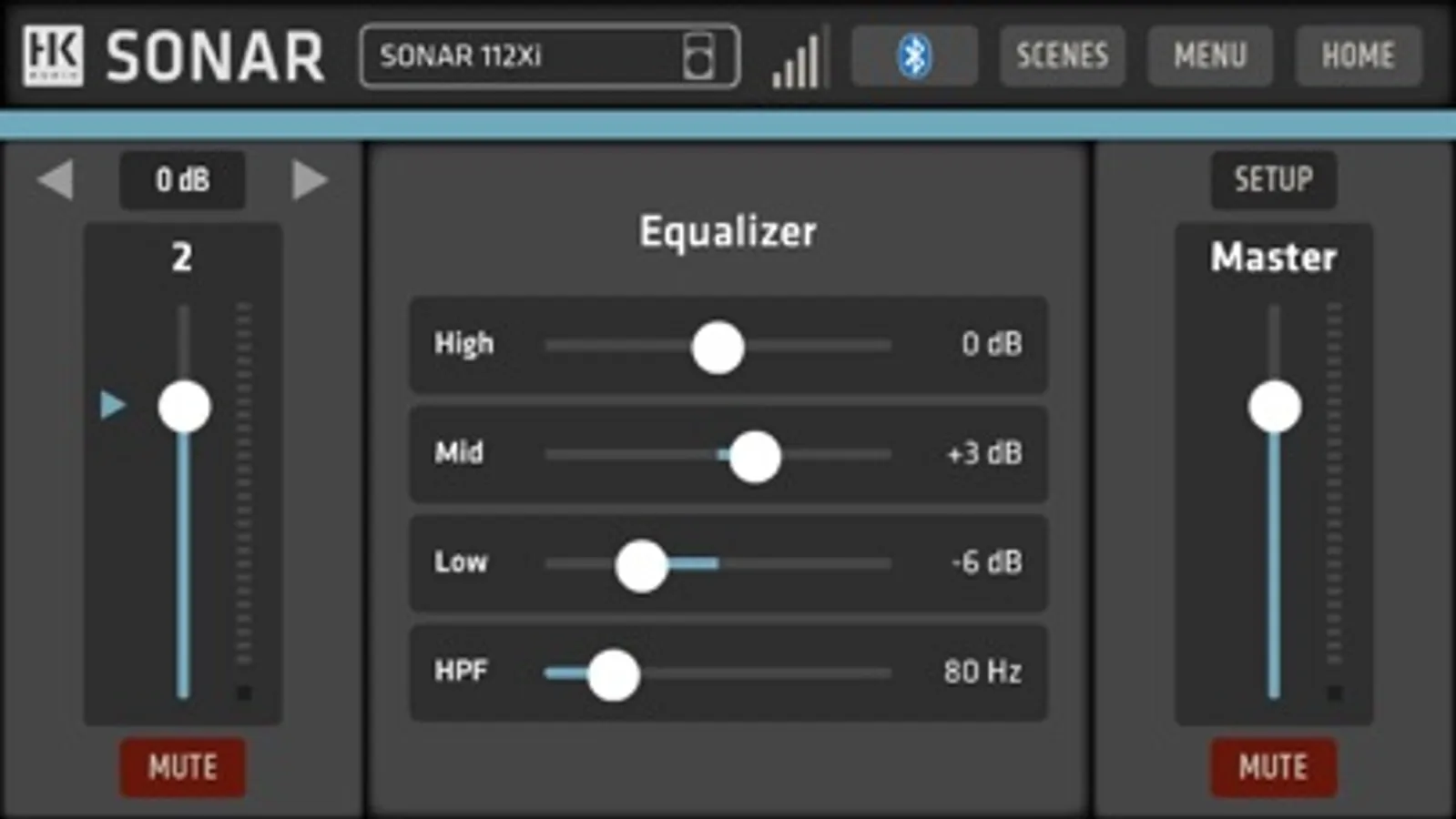 SONAR REMOTE lets you monitor and adjust levels, mutes and EQ settings of SONARs three-channel digital mixer, plus additional DSP settings like the onboard sound modes (Music/DJ/Monitor). Saving and recalling scenes allows to easily tailor your SONAR speaker to fit your application, location, or e.g. favorite microphones.