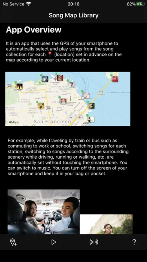 It is an app that uses the GPS function of your smartphone to automatically switch songs according to your current location.