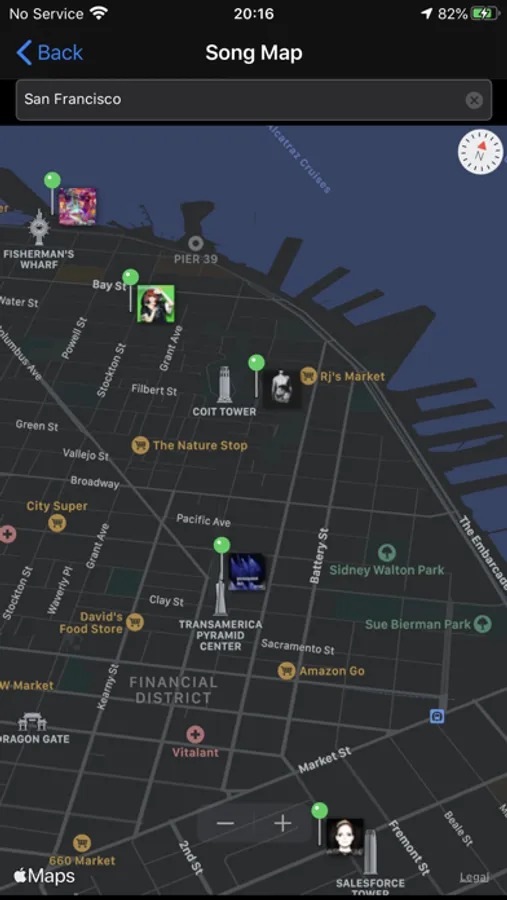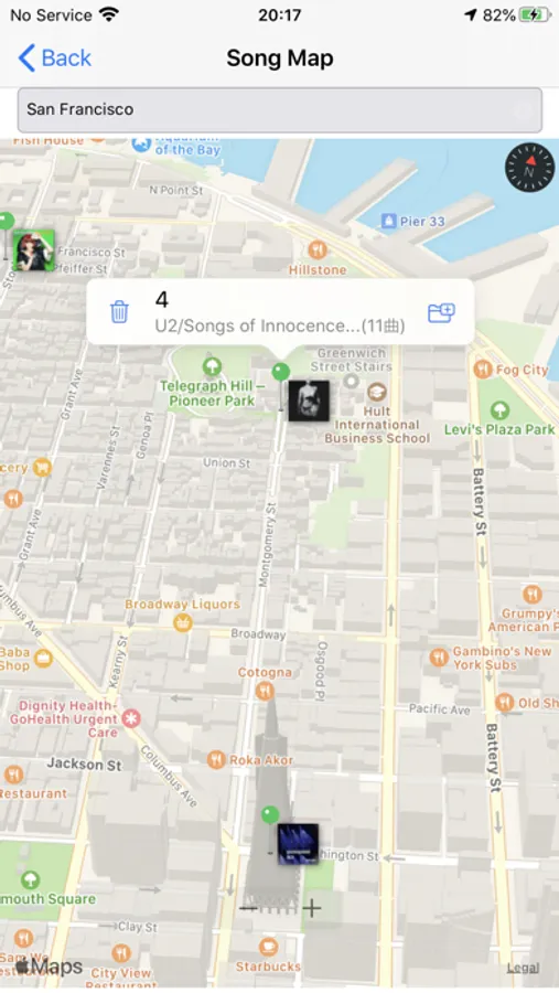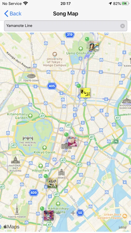 You can freely set up multiple pins(song locations) on the map, such as near the route you plan to move.