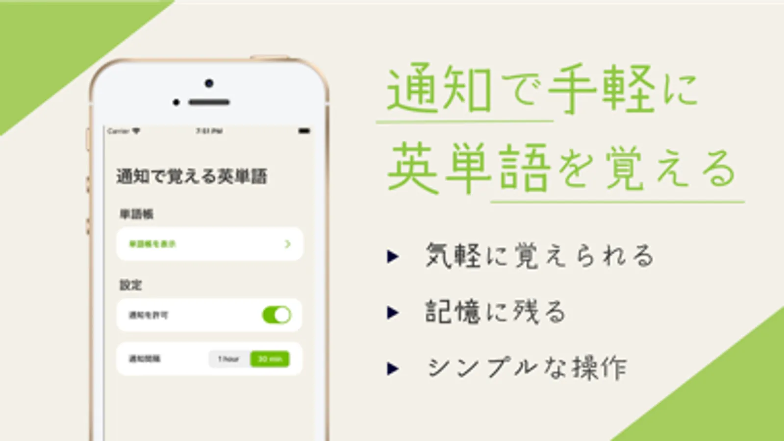 「通知で覚える英単語」は通知で英単語が簡単に覚えられる学習アプリです!