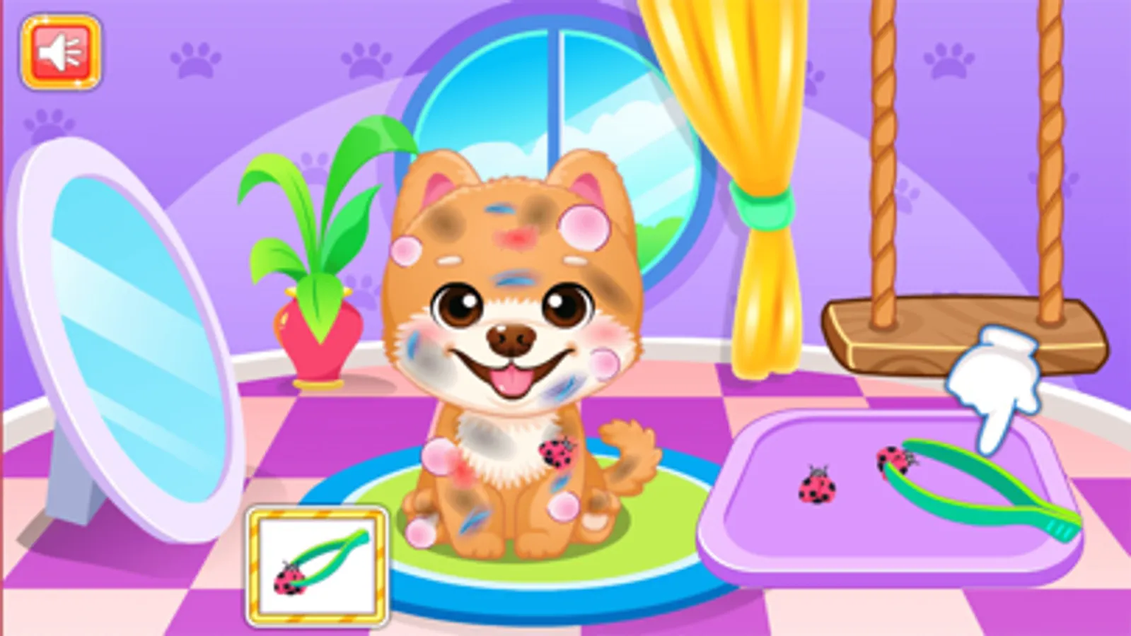 Arf, arf! Puppy has spent all day playing and now he needs you to care for him! In this fun virtual pet game, you'll be in charge of taking care of your puppy's very first grooming. Take him to the pet salon where you will have to complete a whole host of animal games to get him properly groomed after all of the dirt he's picked up while playing outside. You'll feel like a real dog owner as you wash and provide treatments for your puppy. So get to work! Puppy needs you!