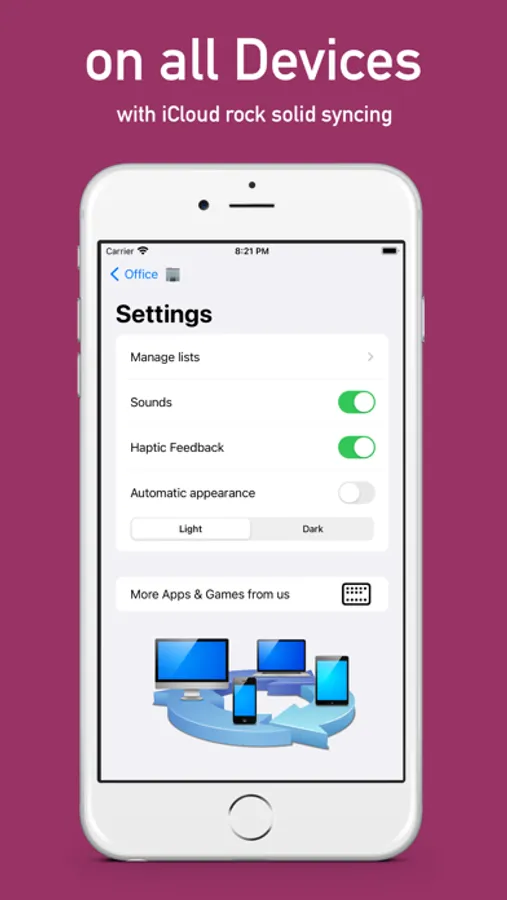 Your lists sync across your devices using iCloud.