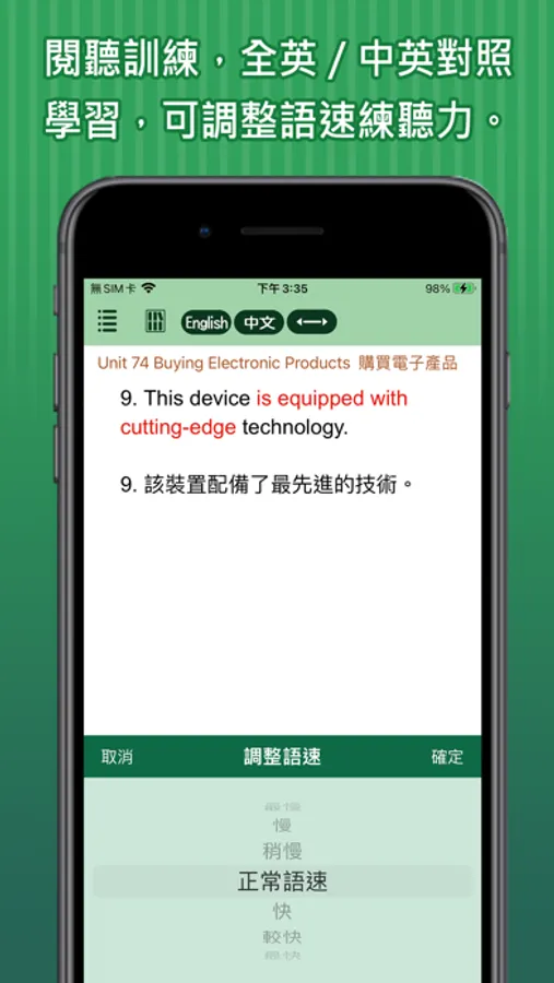 ● 【語速調整】:可調整七段不同速度,讓你聽力訓練減少挫折感。