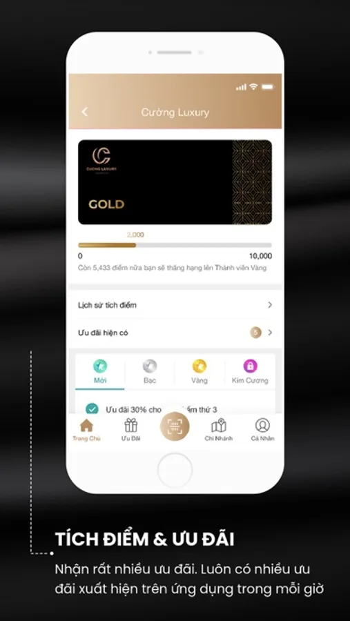 Tích điểm nhanh chóng khi mua hàng, thông báo thăng hạng và nhận quà tặng ưu đãi độc quyền đến từ thương hiệu Cuong Luxury