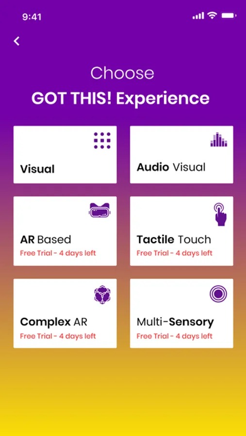 • Use all 6 Got This! Experiences: Visual, Audio Visual, AR Based, Tactile Touch, Brain Game and Multi-sensory.