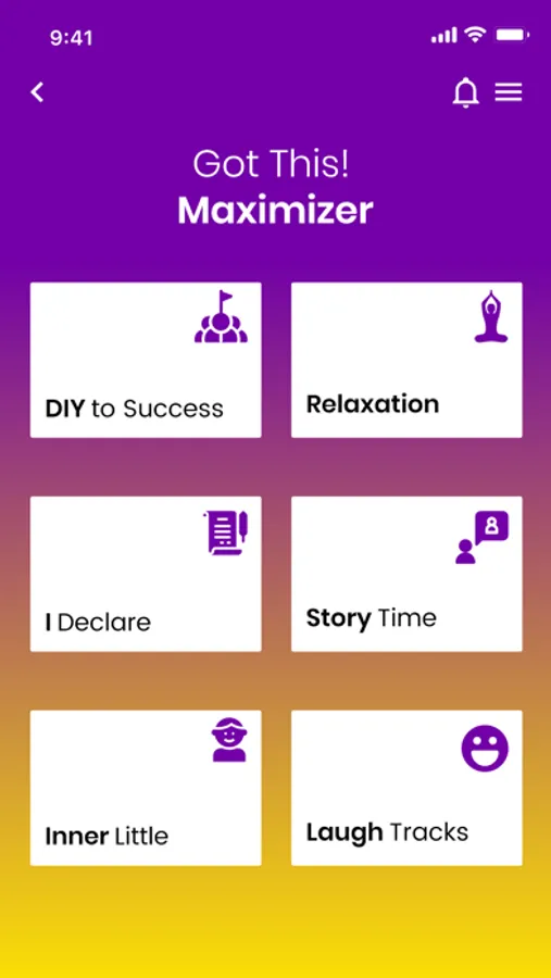 • Try Got This! Maximizers: Do it Yourself for Success, Relaxation, Phobia Fighters, Inner Little, Laugh Tracks, Story Time, I Declare, and more. You also get all of the new features as they roll out.