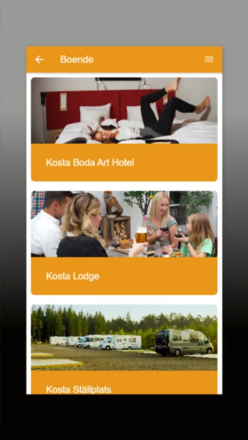 I vår app hittar du som är på besök eller planerar att besöka oss i Kosta all information om de olika upplevelser Kosta erbjuder, allt från shopping och events till glasblåsning hos Kosta Glascenter och safari i Kosta Safaripark. Med hjälp av kartfunktionen i appen kan du enkelt ser var på området du befinner dig samt hitta och läsa mer om våra olika platser att besöka. I appen hittar du även information om våra olika boenden och spa. Du kan på ett enkelt sätt kontakta oss eller boka direkt via appen.