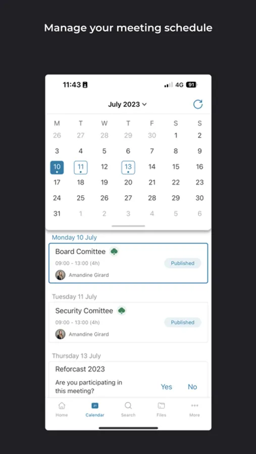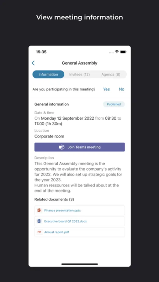 With oodrive_meeting, easily prepare for your governance meetings in a virtual Board Room: send invites to participants, manage your attendee list, share the agenda, link in documents for attendees to consult...all entirely online!