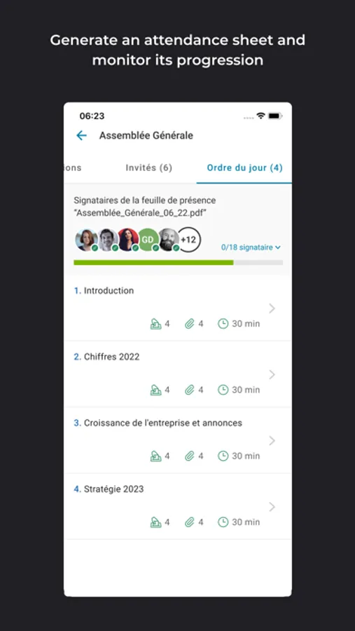 With optimised preparation, Oodrive_meeting makes you more efficient. All key meeting documents are brought together in a single interface. Participants have access to up-to-date versions, and every effort is made to ensure that they can get up to speed quickly. Say goodbye to wasted time!
