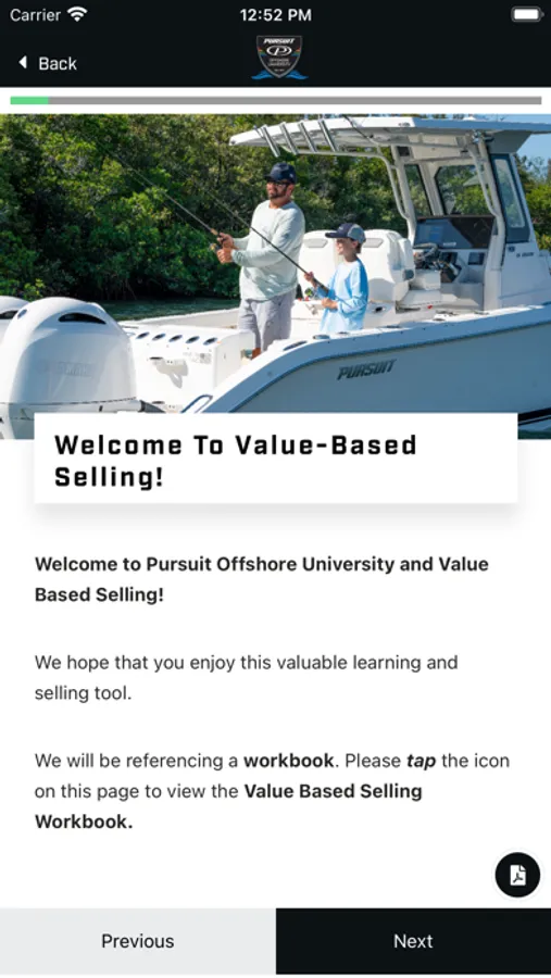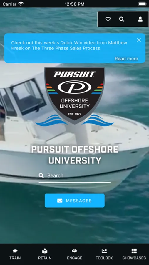 Welcome to the Pursuit Offshore University Learning & Engagement Platform! This app is designed to give professional sales coaching for your dealership as well as high quality marketing materials and product information for the Pursuit Boats brands. We hope that you enjoy this valuable learning and selling tool.
