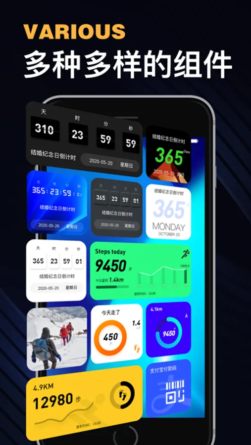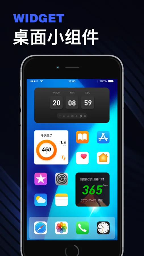 The screen widget can be customized with a countdown to anniversaries, daily steps, and custom desktop photos.