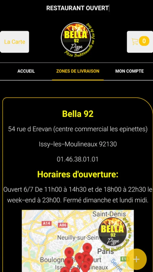 L'application Bella 92 vous permet de commander en ligne ou par téléphone via votre application. Vous pouvez consulter notre carte et choisir vos produits.