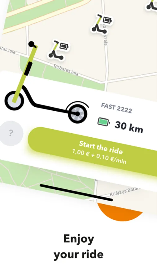 - When you are close to the scooter, tap on the scooter icon on the map and then on “Start the ride”, or scan the QR code and tap on “Start the ride”.