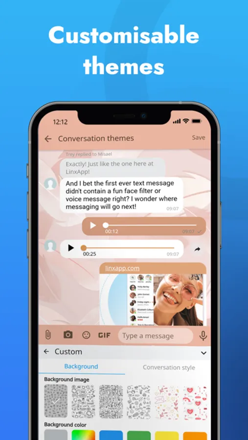 • LinxApp is secure. Your conversations (voice and text) are yours. We don’t eavesdrop or read your messages as here at LinxApp we believe privacy shouldn’t be an option it should be a necessity.