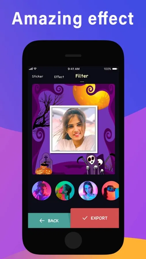 - Choose our unique photo filters to set the mood of your story.