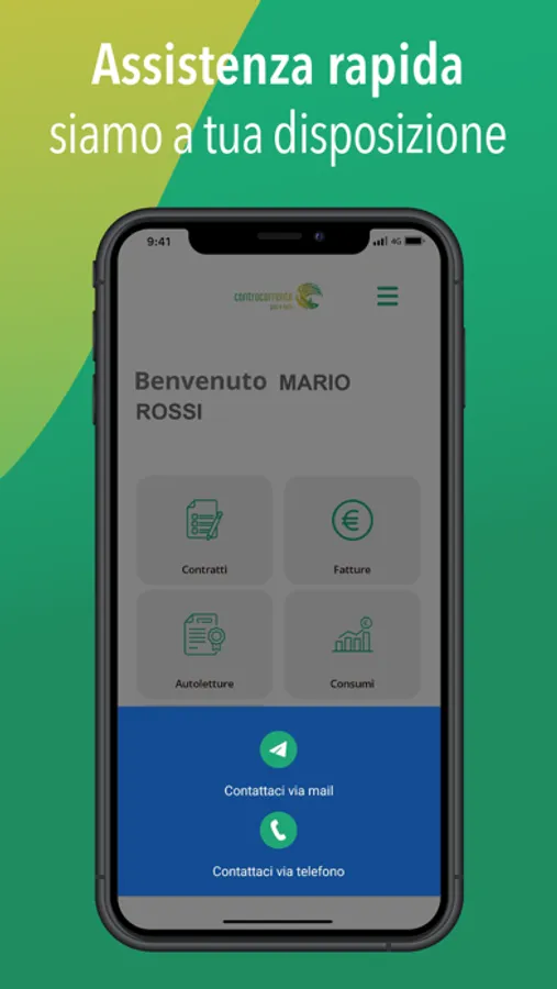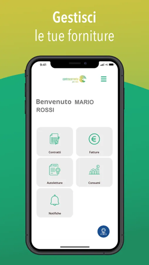 Intuitiva e facile da usare, la app di Controcorrente Gas e Luce si presenta attraverso una Home Page che ti consente di accedere a diverse funzionalità.