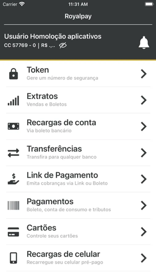 Nele você controla todo o seu financeiro, realiza transações bancárias, pagamentos, transferências, conferir seu saldo, recarregar seu celular e muitas outras operações em um só click.