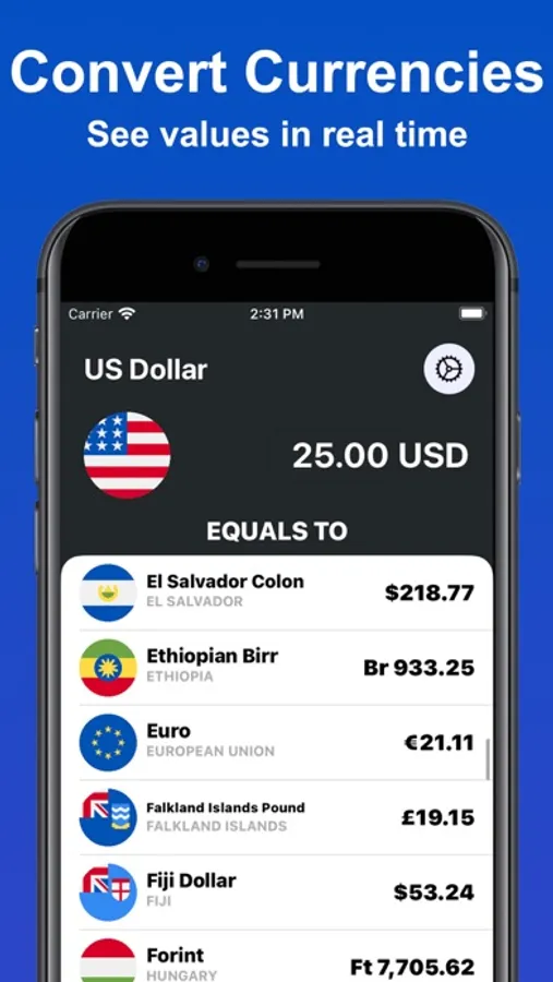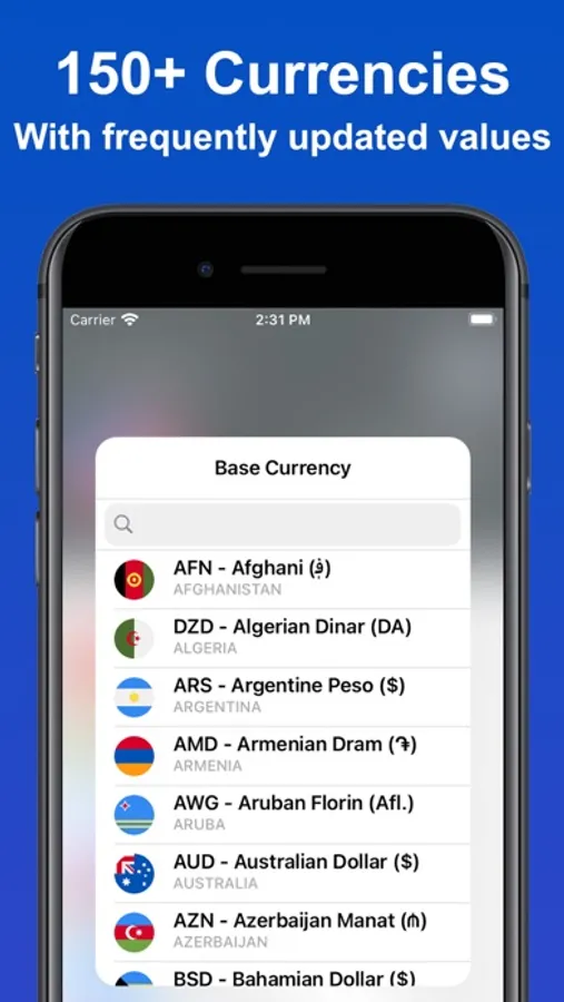 Currency Exchange delivers frequently updated data on more than 150 currencies of the world and allows you to instantly convert values between them!