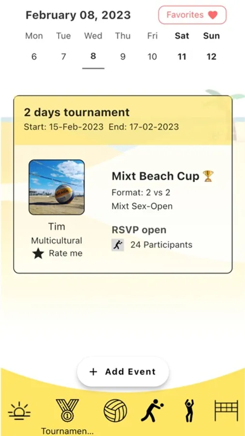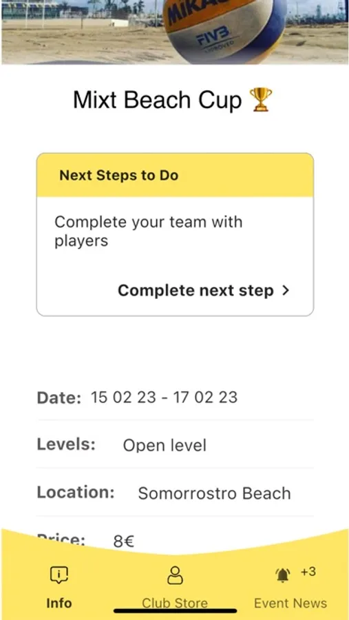Athletes can manage all their volley events and club memberships through the app. Volley World accompanies them on the journey to become a better player by visualizing their current progress based on a point system from the tournaments.