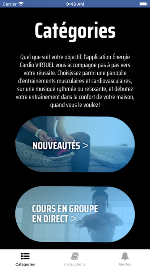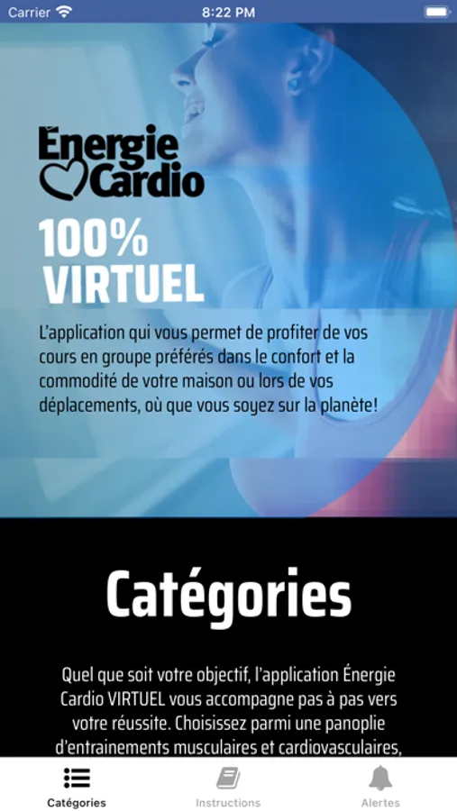 L’application Énergie Cardio VIRTUEL est votre meilleure partenaire d’entrainement à l’extérieur du gym pour ne plus manquer vos cours en groupe préférés et pour vous soutenir dans votre parcours de santé et de remise en forme, et vous aider à tirer le meilleur parti de votre programme d’entrainement. En complément à votre abonnement au gym, c’est vraiment le meilleur des deux mondes ! Il n’y a plus d’excuses qui tiennent, vous pouvez maintenant vous entrainer partout et en tout temps !